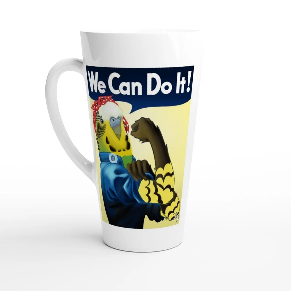 This beautiful ceramic latte mug is perfect for any event of the day. Your morning coffee, a hot chocolate, or any other hot beverage you enjoy. The mug is glossy white and the prints come out beautifully and vividly on it. The print retains its quality and luster when used in both microwaves and the dishwasher.
